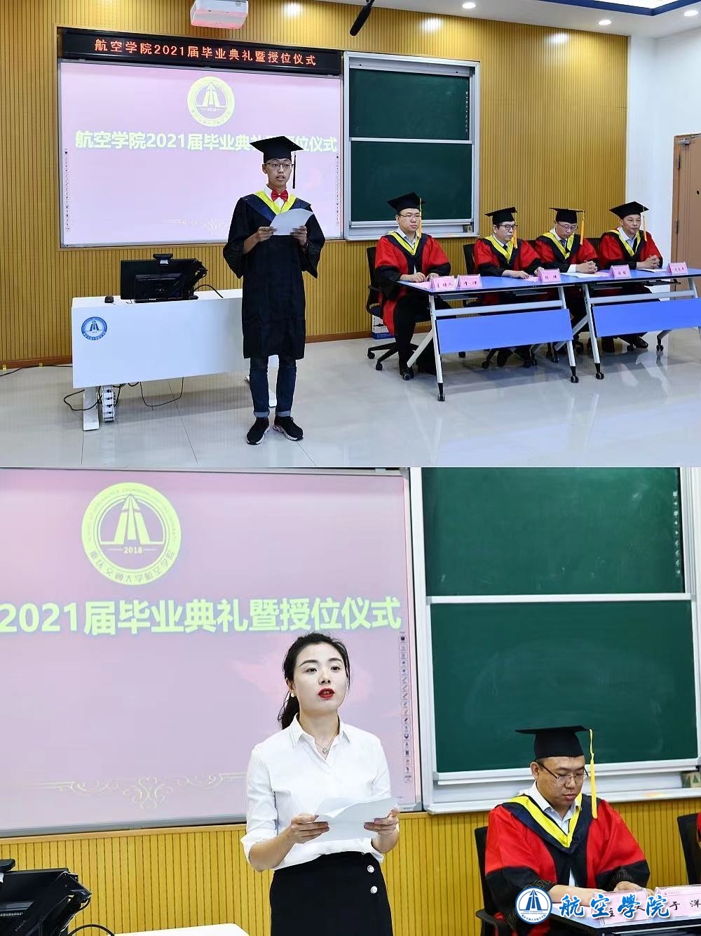 6月25日上午,重庆交通大学航空学院2021年学生毕业典礼暨授位仪式在科学城校区航空楼210隆重举行。学院全体院领导、全体教职工、学院学术委员会全体成员、2021届全体毕业生、2018级及2019级学生代表共同见证了这一特殊时刻。院长助理于洋教授主持典礼。