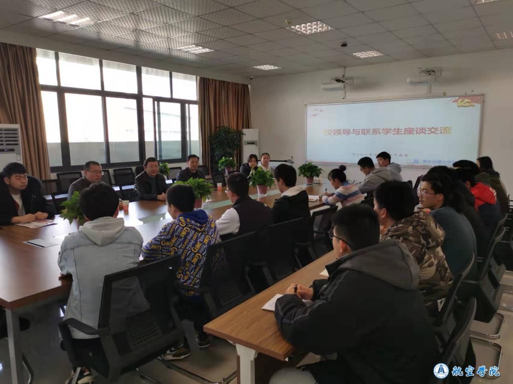 学生座谈环节,副校长赵明阶对同学们日常生活、学习条件、生涯规划等方面的问题一一剖析,悉心解答。副校长赵明阶肯定航空学子的优秀成绩,感谢航空老师的艰辛付出。副校长赵明阶教导同学们要提升能力,广博学习。做好学习计划、牢固理论知识、注重实验课程、积累实践经验。