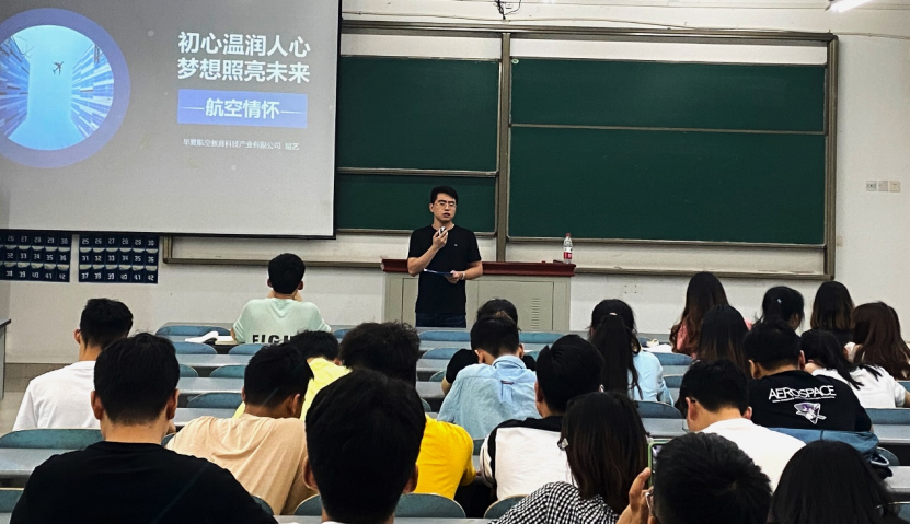 6月10日下午,航空学院在科学城校区A01109开展“航空情怀”前沿微课讲座,讲座由华夏航空教育科技产业有限公司副总经理屈艺主讲,学院学科与研究生管理办公室主任林栎阳主持,2019级全体学生聆听讲座。