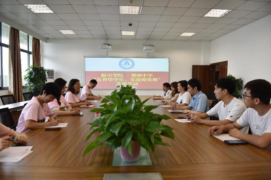 航空学院党委书记舒琳首先对观塘中学领导一行的到来表示欢迎,她表示,中学教育是大学教育的基础,只有为中学教育铺实了道路,学生才能在大学实现更好的发展。随后,舒琳就学院发展的现状和前景进行了简单的分析,她指出,认真落实立德树人、五育并举,是学院教书育人的重要任务,也是根本出路,希望大家长期交流,互相学习,为共同做好五育并举和党建特色建言献策。
