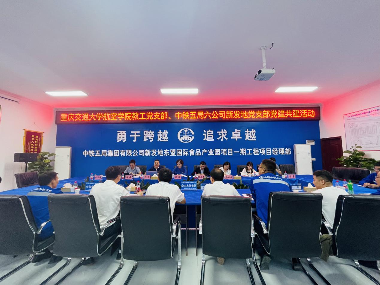 华龙网-新重庆客户端讯(通讯员 耿雪梅)为促进重庆交通大学航空学院与中铁五局六公司深入党建交流、建立良好合作关系,9月23日,重庆交通大学Betway立即登录与中铁五局六公司新发地项目党支部联合组织开展了支部共建活动,中铁五局六公司党委委员、副总经理尹忠文,副总经济师、人资部长袁世全,党委工作部部长杨树良、党委工作部副部长赵靓、新发地项目经理沈武、新发地项目党支部书记李继鹏,重庆交通大学航空学院党委书记舒琳、纪委书记韩正清,教工党支部书记、副院长邓涛,教工党员、企业骨干员工共计20余人参加本次支部共建活动。