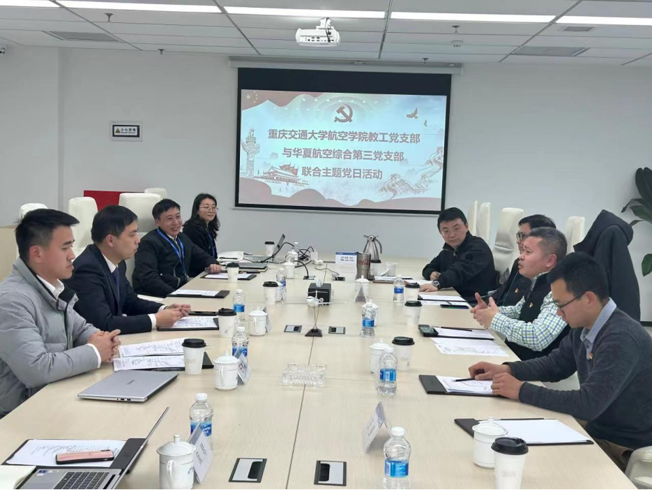 为深化校企合作交流,提升基层党建水平,切实增强基层党组织的凝聚力、创造力和战斗力。2月7日,重庆交通大学航空学院教工党支部书记、副院长邓涛,教学办主任张进,制造系主任王强,动力系主任沈挺和对外合作交流办主任董永武一行前往华夏航空教育科技产业有限公司,与华夏航空综合第三党支部开展校企党建共建活动。