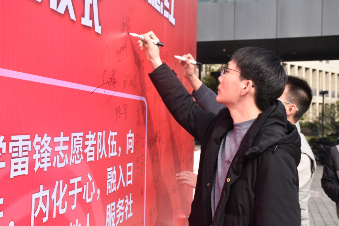 下午4时,航空学院学生党支部全体党员和部分入党积极分子在致远楼前参加学雷锋活动启动仪式。“我宣誓,我志愿加入学雷锋志愿者队伍,向雷锋同志学习,将雷锋精神化外化于行,内化于心,融入日常,化作经常……”整齐的声音在校园响起,全体成员在此庄严宣誓并郑重签字。