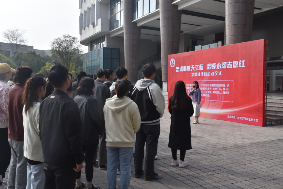 “‘忠诚奉献天空蓝,雷锋永颂志愿红’活动正式启动!”随着党支部书记张小琴的话音落下,航空学院学雷锋活动正式拉开大幕。新发展党员刘丽君表示,她将践行雷锋精神,积极参与志愿服务活动,将学雷锋融入日常、化为经常,用“政治合格、执行纪律严格、品德合格、发挥作用合格”的标准严格要求自己,做一名合格党员。接下来,党支部志愿者小分队,将走进寝室、校园、社区,开展文化传播、保护环境、无偿献血、航空知识科普、帮人排忧等志愿服务和帮扶活动。