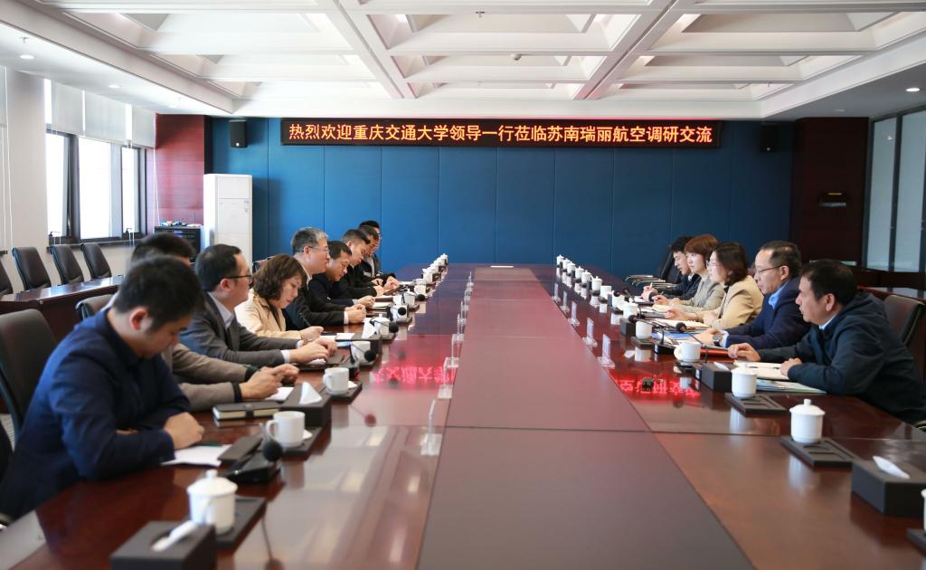 随后调研人员在公司七楼会议室开展深入座谈交流,苏南瑞丽航空党委书记、董事长叶亚娟,总经理成军、党委副书记沈平、维修副总陈海、党群人事部总经理刘华峰等参加了座谈。叶亚娟董事长简要介绍了公司在民航客运、文化打造、团队建设等方面的发展状况,陈海副总对公司维修人机比、人员学历构成和发展路径进行了介绍,刘华峰总经理介绍了公司近年来的招聘需求和要求,成军总经理重点对学校在课程设置、学生教育管理等人才培养方面提出中肯建议。通过深入交流,双方在学生实习实训、就业招聘、校企合作等达成初步意向,并约定苏南瑞丽航空来校开展招聘与交流活动。张铭副校长表示,希望苏南瑞丽航空与重庆交大携手并进,积极拓展合作领域,共同打造在航空人才培养方面的长效机制。