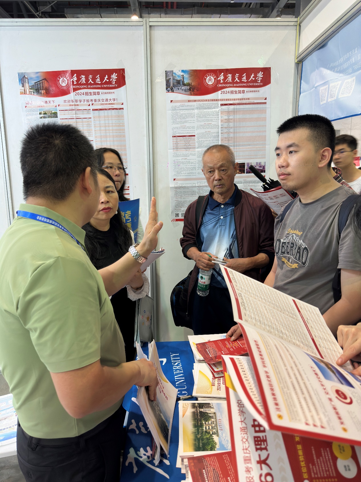 航空学院邓涛副院长和李根老师代表学校参加了本次高考招生咨询活动并取得了丰硕的成果。在咨询活动现场,重庆交通大学的展位前人头攒动,学校以卓越的教学质量和鲜明的学科特色成为众多考生关注的焦点。26日一天共接待了近500名高考学子,发放了500余份精心准备的招生宣传资料。在为考生和家长详细介绍学校的概况、特色专业、历年录取分数排名、奖学金政策、国际交流机会等关键信息的同时,也耐心细致地解答了同学们关于专业设置、就业升学、学术科研、校园文化、就业前景等方面的种种疑问,为江西地区的考生提供了全面而深入的了解渠道。