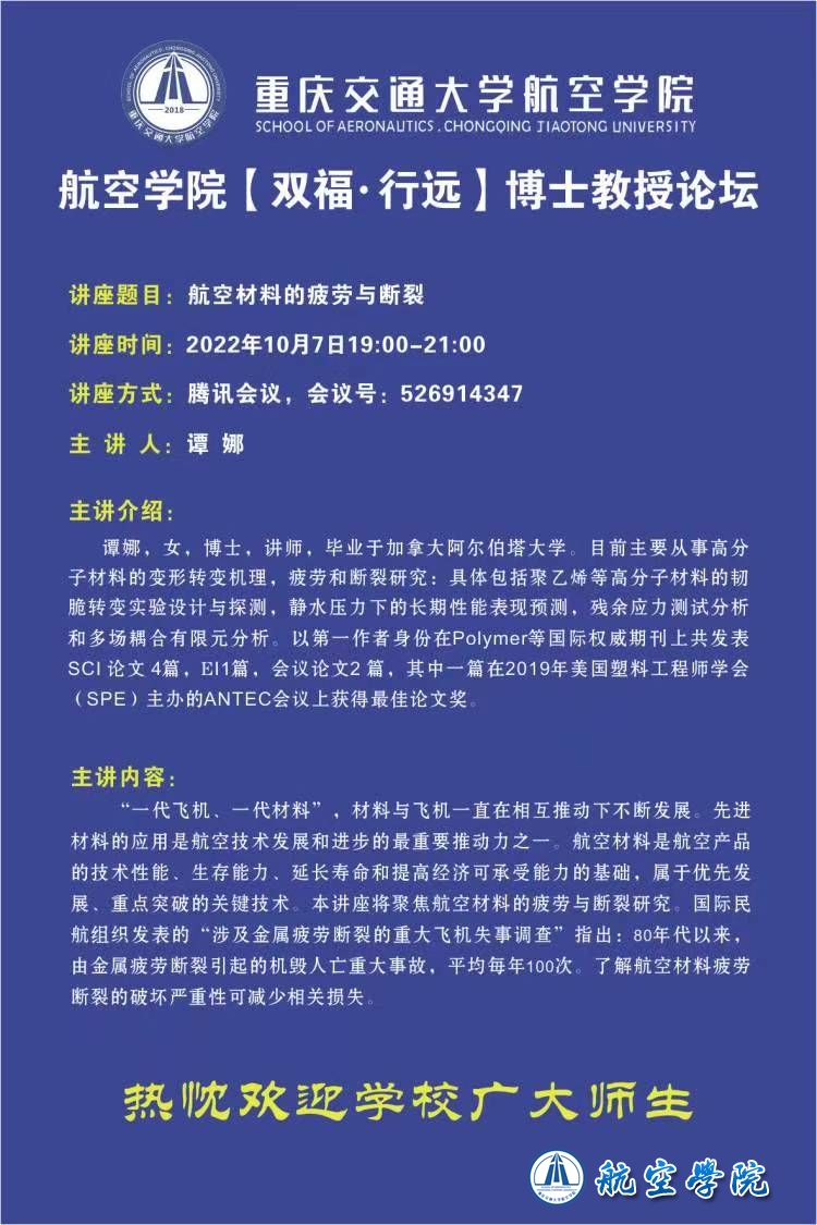 上一条:航空学院2021-2022学年本科生国家奖学金推荐结果公示下一条:【双福•行远】博士教授论坛:航空工程材料的强化及应用