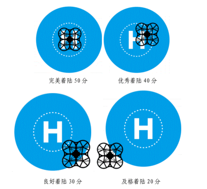 降落得分:具体得分如图所示,降落到停机坪外无得分。