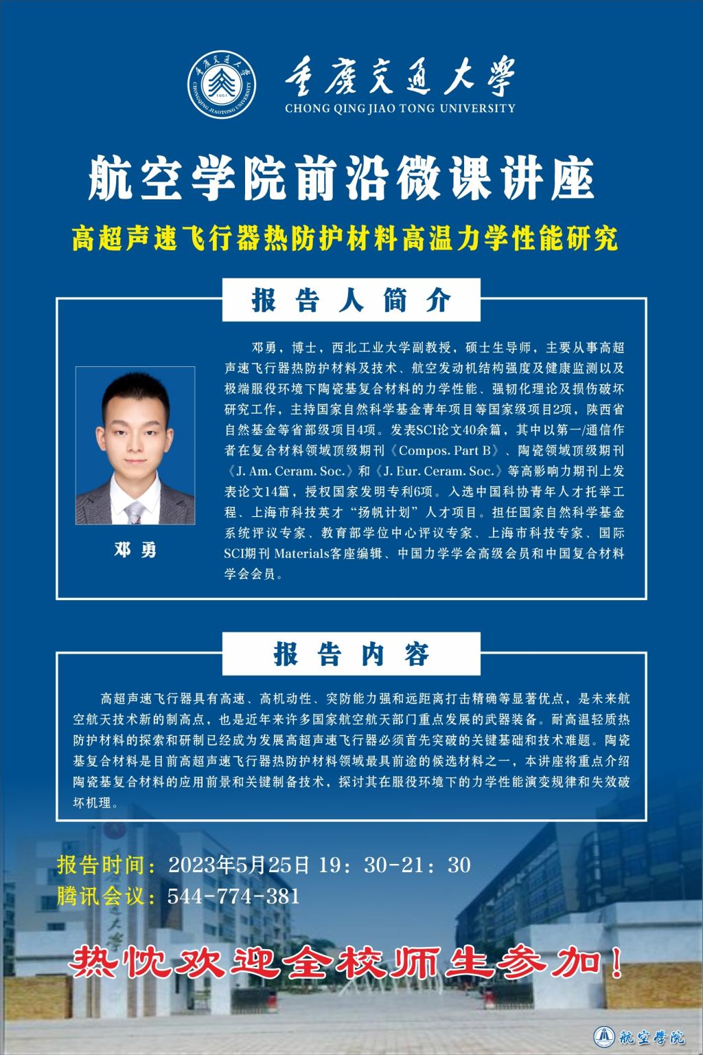上一条:航空学院2023年研究生科研创新项目拟推荐项目公示下一条:关于举办重庆交通大学首届“承载飞行梦想,放飞空天希望”航空航天模型仿真制作大赛的通知