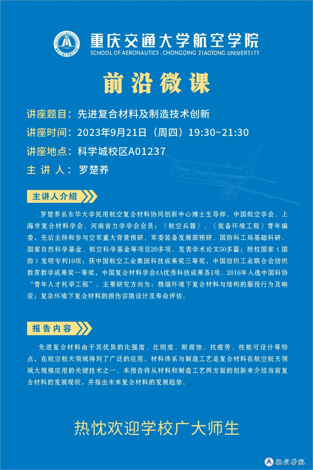 上一条:航空学院2023年研究生国家奖学金申报评审结果公示下一条:航空学院5周年院庆系列讲座:材料表界面力-电-化学耦合机制及其在电化学能源体系中的应用