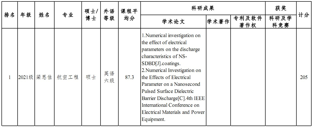 根据2023年研究生国家奖学金评审工作安排,航空学院研究生奖学金评审委员会参照上级和学校有关要求,于2023年9月21日16:30对本院研究生申报的国家奖学金材料进行了评审,选出推荐学生,现公示如下: