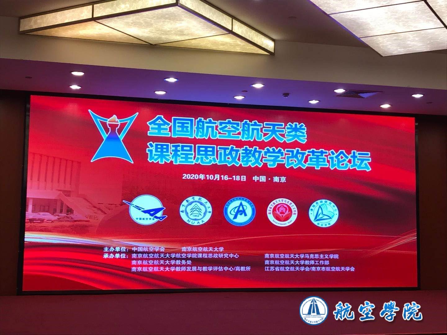 10月17-18日,由中国航空学会与南京航空航天大学共同主办的首届全国航空航天类课程思政教学改革论坛在南京举办,航空学院王永虎教授、邵磊博士、沈挺博士三名教师参加论坛,学习交流。