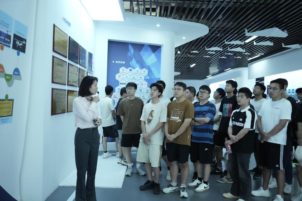 活动第一项,参观绿航院的展厅。在那里,绿航科技公司投资发展部副部长甘雨详细介绍了院所的科研背景、成果以及未来的发展规划,激发了新生们对航空领域的浓厚兴趣。参观持续了20分钟,学生们对展厅中展示的各类研究成果表现出极大的好奇和热情。