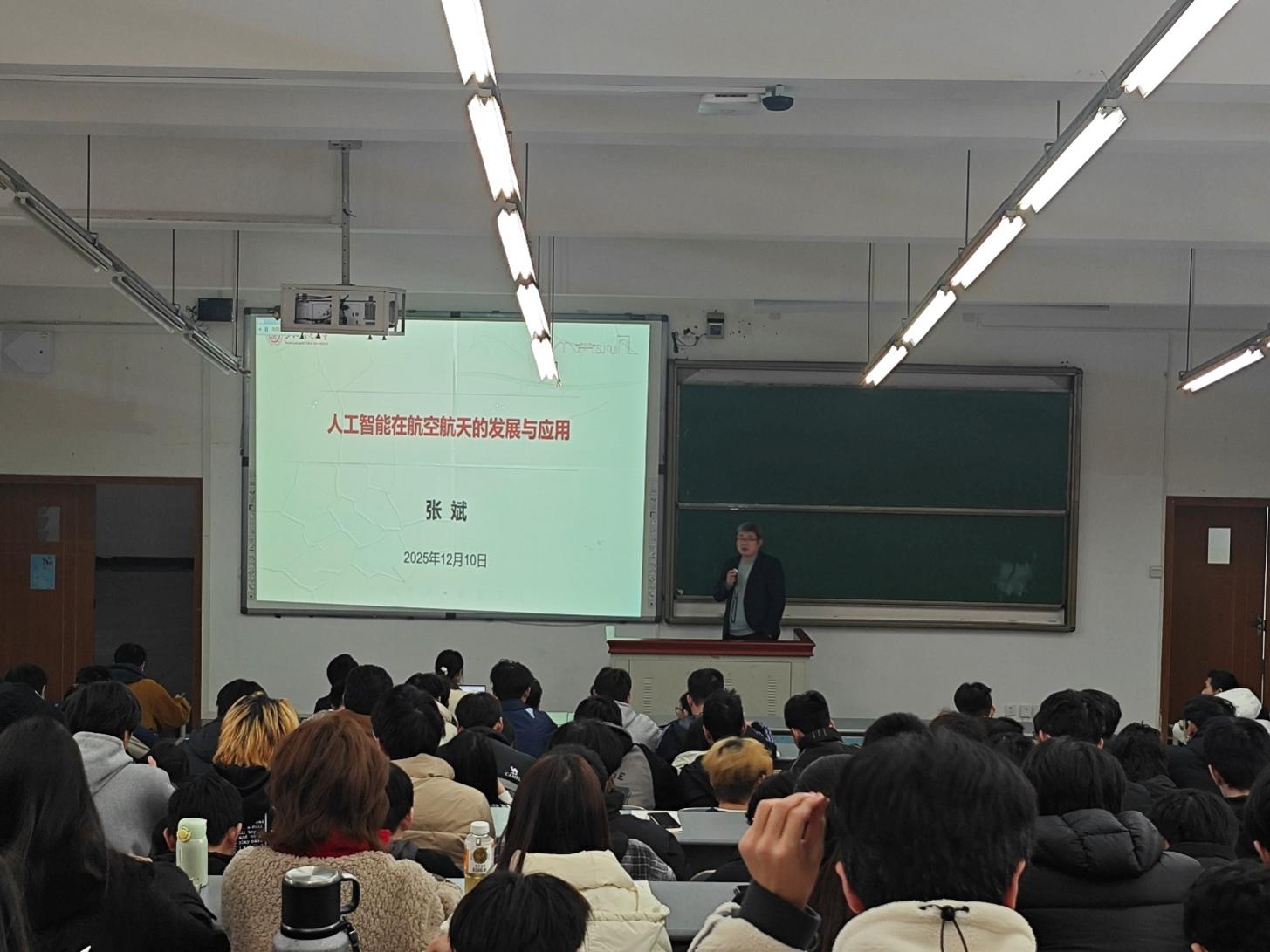 2025年12月10日上午,航空学院邀请上海交通大学航空航天学院研究员、上海交通大学重庆人工智能研究院工业软件中心副主任张斌,在科学城校区A01238教室成功举办了主题为“人工智能在航空航天领域的发展与应用”的前沿微课讲座。