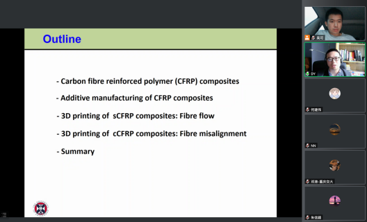 受重庆交通大学航空学院的邀请,英国爱丁堡大学杨东民教授于5月31日做客学院前沿微课讲座,通过腾讯会议在线作了一场精彩的学术报告“复合材料3D打印的纤维运动和沉积机制”。