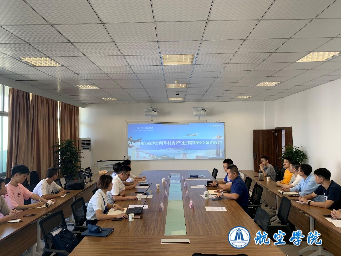 为进一步深化校企合作,积极拓展毕业生就业市场,9月7日,应航空学院邀请,华夏航空教育科技产业有限公司副总经理郑泽、董事会主任李景、业务发展经理(校企合作)史丹丹、业务支持主管陈安等一行到航空学院开展合作交流。学院副院长邓涛、系主任任毅、对外合作交流办主任董永武以及部分专业教师、2021届毕业班学生参加座谈交流。