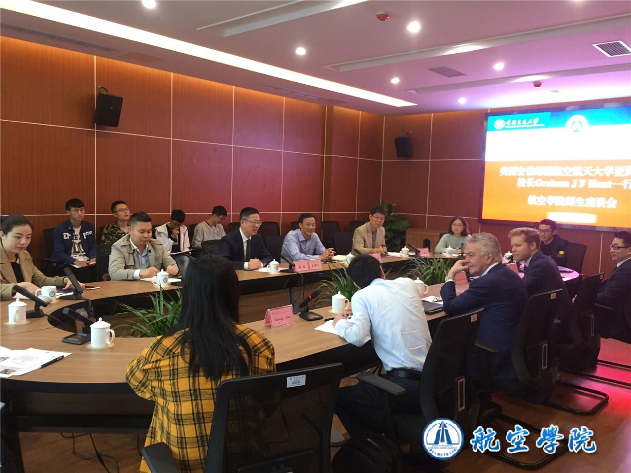 9月28日,安伯瑞德航空航天大学亚洲校区校长Graham J F Hunt教授,招生及运营总监Matthew Flaherty,以及运营事务代表邹丽明一行到访我校,并与学校签订合作备忘录。当天下午,Hunt教授一行在双福校区与航空学院师生进行了亲切座谈交流。