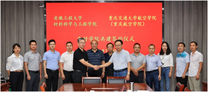华龙网-新重庆客户端讯(郭晓彤 实习生 冯佩佩)7月30至31日,重庆交通大学航空学院(重庆航空学院)院长张铭一行赴安徽工程大学,与安徽工程大学材料科学与工程学院签订友好学院建设共建协议;赴湾沚区航空产业园、自贸区芜湖片区管委会开展产学研联合考察活动。重庆交通大学航空学院(重庆航空学院)院长张铭、副院长邓涛,安徽工程大学校党委常委、副校长费为银,社会合作处处长陶玉贵出席签约仪式。