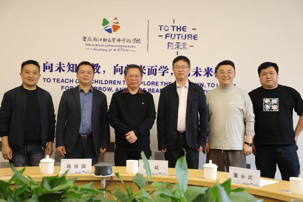 重庆市江津中学校党委书记张跃国、校长羊自力、蔚来天空(重庆)航空科技有限公司法人田红林、重庆两江新区华师中旭学校总校长陈珍国等参与了交流。