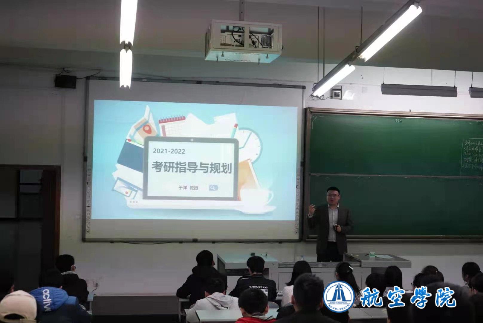 为进一步加强学院学风建设,帮助同学们做好学业规划、明确学习目标、找准学习方向,全面了解考研相关规则,3月22日晚,航空学院在A01教学楼129教室举办2019级学生考研指导规划讲座。讲座由航空学院于洋教授主讲,学院专职辅导员、2019级全体同学以及2017、2018级优秀学生代表共计180余人参加。
