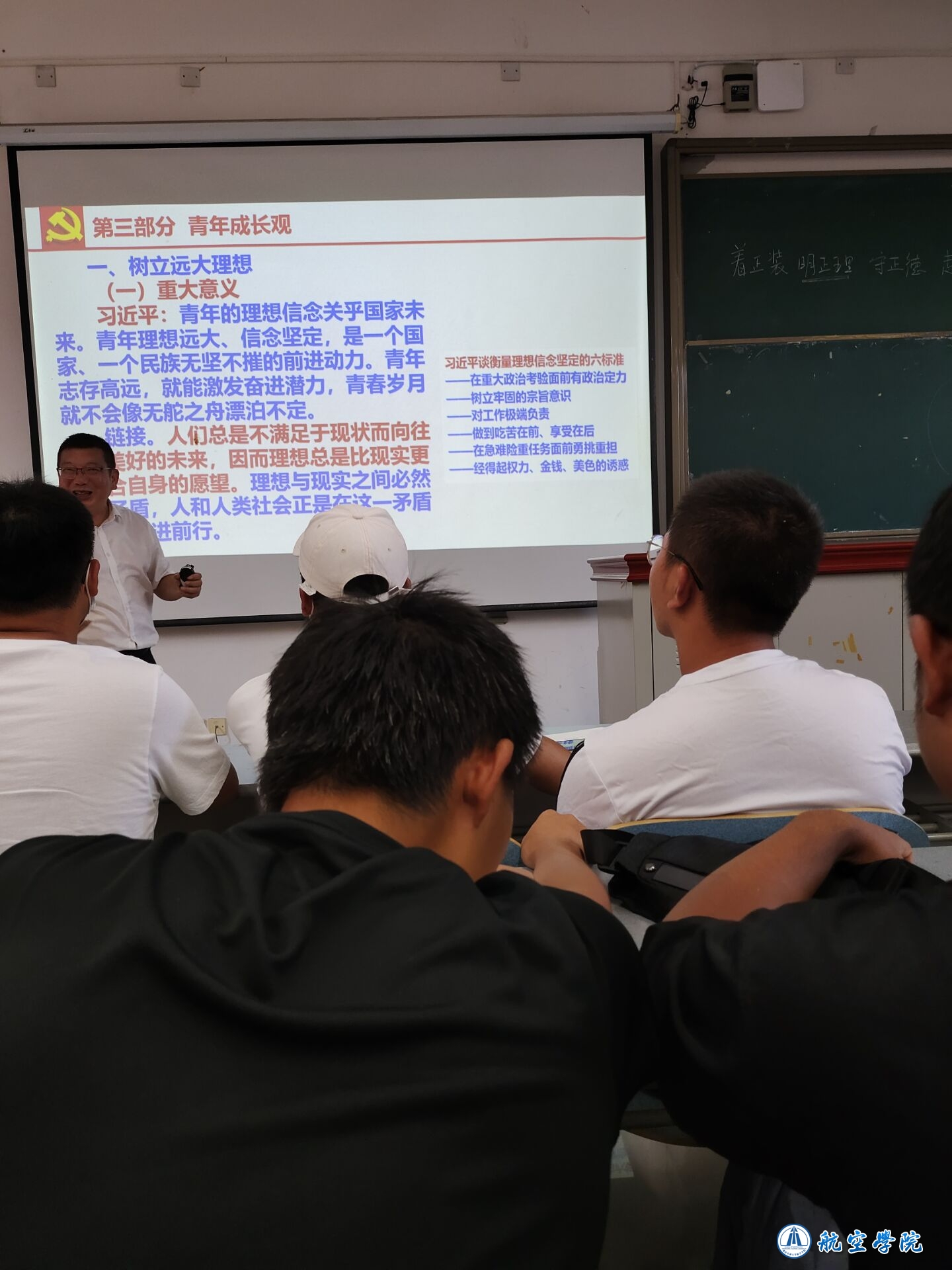 9月24下午在A01338教室,航空学院党总支在新生入学教育中运用习近平总书记青年观指导新生成长发展,安排正处级组织员石加友教授为学院全体2021级新生带来了一场生动有趣、内涵丰富的习近平总书记青年观“四维”解读专题讲座。