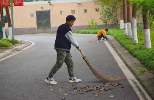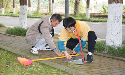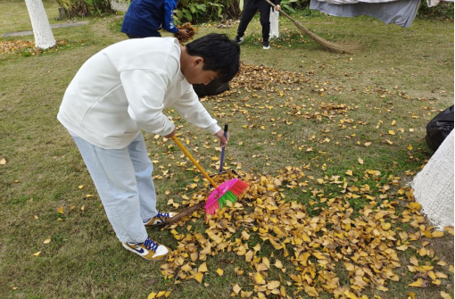 本次活动的任务主要是清理道路与草坪上的垃圾以及落叶,拔除多余的杂草。同学们在清洁工作中十分认真、细致,展现了优良的协作能力劳动氛围。