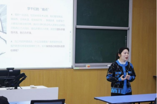 本次培训的主题是团队管理及执行力。在培训过程中,沈成晨老师采用实例讲解,条理清晰,言语生动,亦与同学们积极地互动。在关于如何提高团队的执行能力的讨论中,冯俊杰、丁涛等学生干部踊跃发言。其中,王任翔同学的精彩发言更是赢得了满堂喝彩。