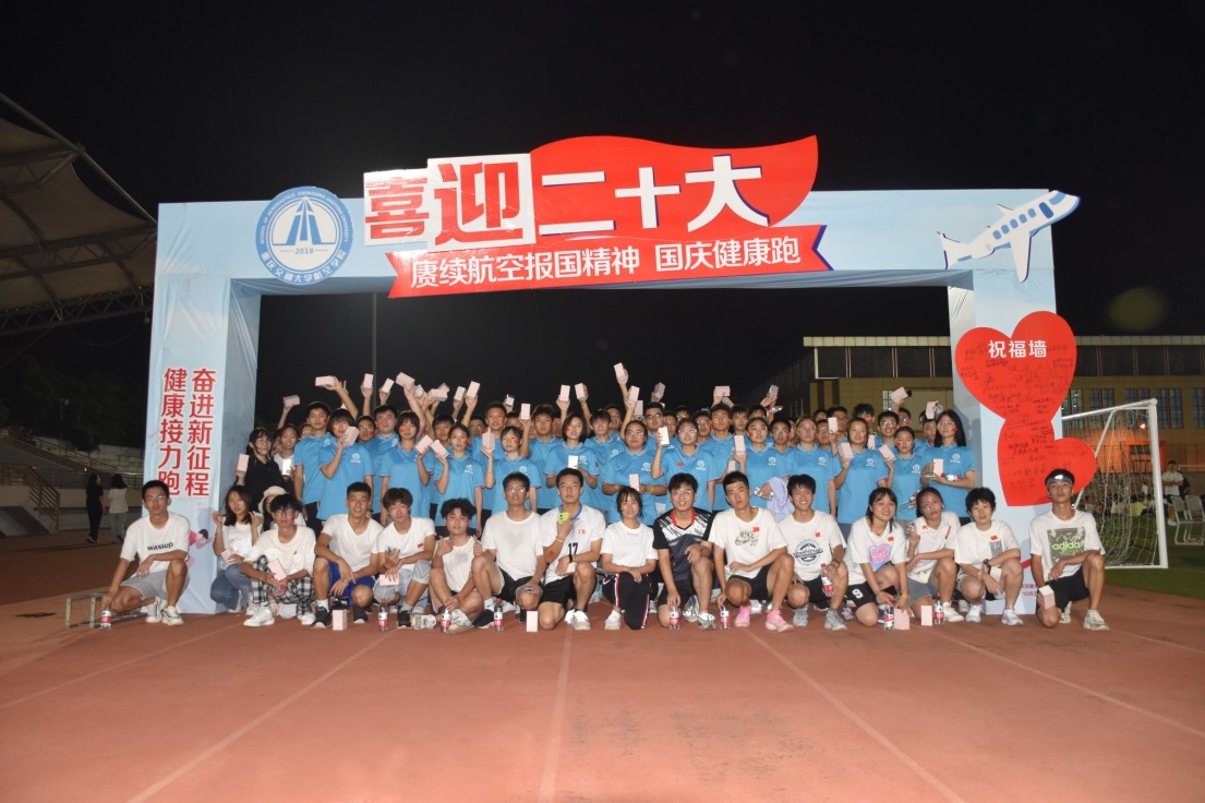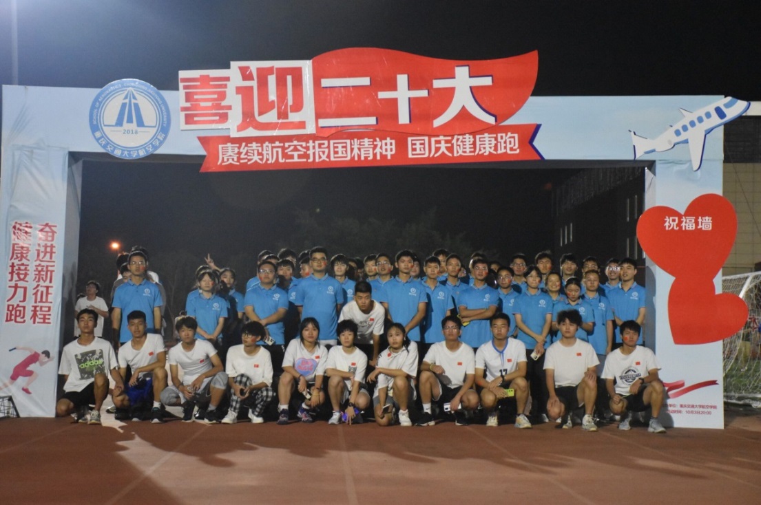 华龙网-新重庆客户端讯(郭晓彤)值此国庆佳节,为欢庆祖国生日,增强学生爱国主义情感,近日,重庆交通大学航空学院10名航空领跑团成员带领50名航空学子于科学城校区运动场健康接力跑。