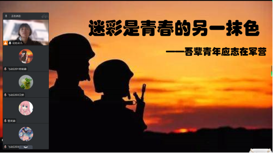 为深入学习贯彻落实党的二十大精神,实现新时代党的强军目标,加强新时代大学生爱国主义教育,充分发挥“朋辈引领”作用,带动和引导更多青年学子投身军营,报效祖国。6月2日,航空学院在线上召开退伍学生士兵朋辈领航分享交流会,2022级退役学生士兵孔淋主讲,学院近130名学生参会。