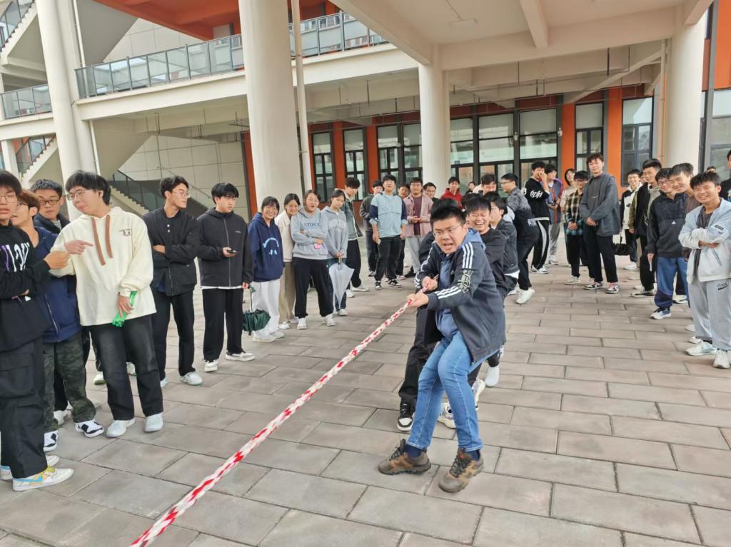 活动现场热闹非凡,欢呼声、加油声此起彼伏。比赛项目丰富多样,包括“心”的较量(拔河)、快乐传递(乒乓接力)、同心协力(四人五足)、心随毽舞(踢毽子)等四个项目,每个项目都充满了趣味性和挑战性。