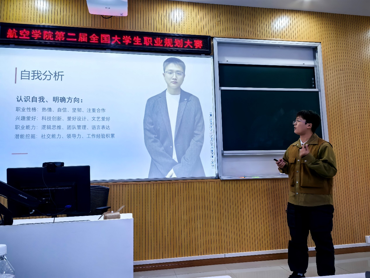 比赛中,参赛者们自信满满地站在讲台上,用流利的语言配合精心准备的幻灯片,向评委和观众详细阐述了他们的职业规划。从个人职业目标设定到行业趋势分析,从职业路径规划到实践能力培养,每个参赛者都展示了对职业规划的独特见解与详尽方案。其中一位选手将对航空航天产业发展的深入研究与个人爱好——玩具拆解相结合,立志成为航空航天工程师;另一位选手则基于改善家乡交通不便的愿望,提出了创新性的交通解决方案,其规划既体现了个人的社会责任感,也突显了职业规划的社会价值。这些规划不仅设定了短期目标,如完成学业、参与实习项目,还描绘了长期愿景,包括担任航空领域的关键职位以及推动行业发展等,清晰地勾勒出未来的职业蓝图。